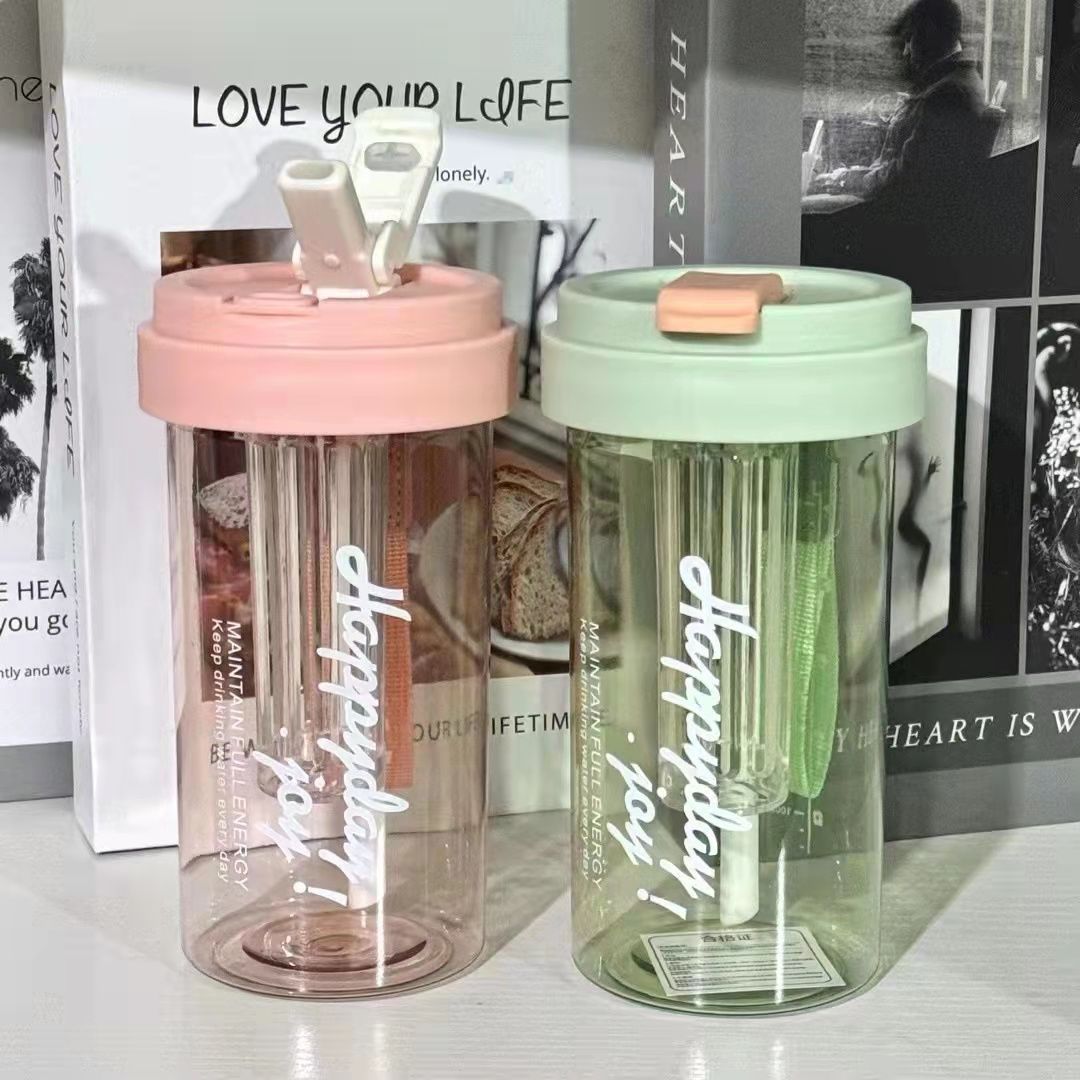 見た目の良い女の子のための夏のウォーターカップ 2024 新しいスタイルのティーセパレーターストローカップ夏の高温耐性インターネットセレブティーカップ