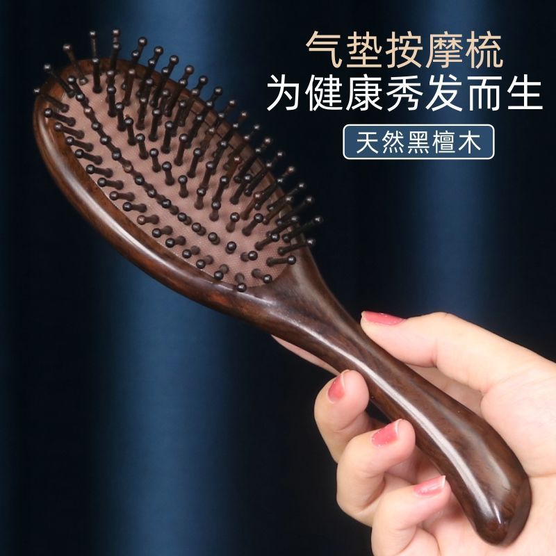 エアクッションコーム、エアバッグマッサージコーム、静電気脱毛、天然黒檀、女性専用ロングヘアスムージングヘア、家庭用