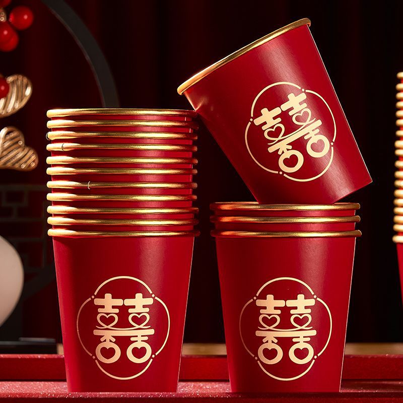 結婚式使い捨て紙コップゴールデン高級厚みのある結婚式のカップ結婚式の宴会水カップホームレッドウェディングティーカップ