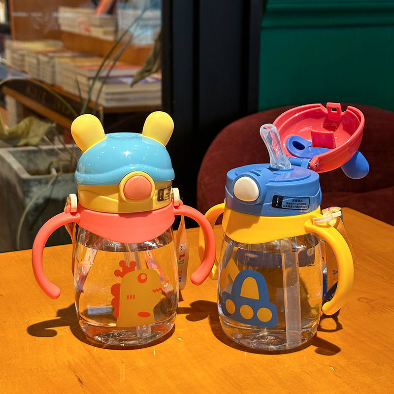 夏の韓国漫画子供用ウォーターカップ幼稚園ベビーハンドルカップ高価値学習飲料カップ落下防止ストロー付き