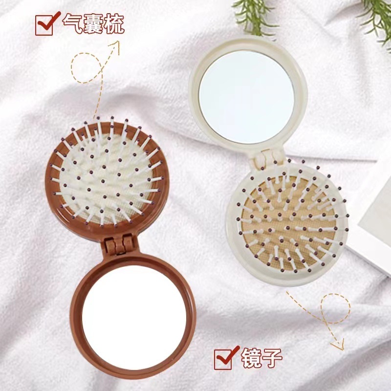 かわいい折り畳みエアバッグ櫛マッサージ櫛鏡一体小型携帯ミニクッション櫛女子小櫛