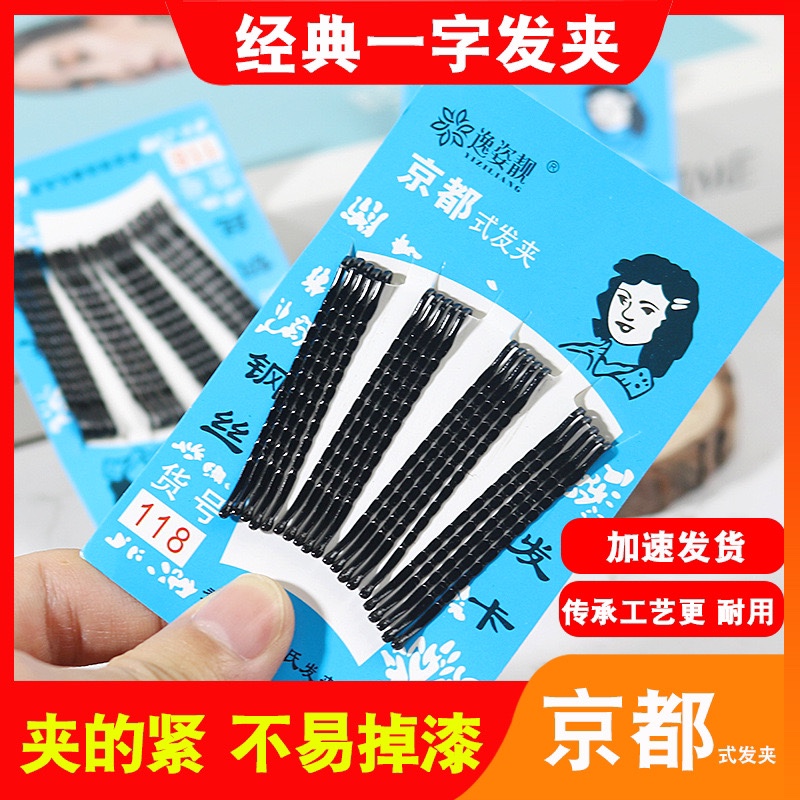 女性用黒のワンラインヘアクリップ、サイドヘアクリップ、前髪固定ヘアクリップ、スチールクリップ、U字型クリップ卸売