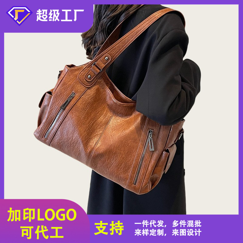 スエードバッグ大容量レディース脇下通勤新作メイラードレイジー高級シングルショルダートートバッグ