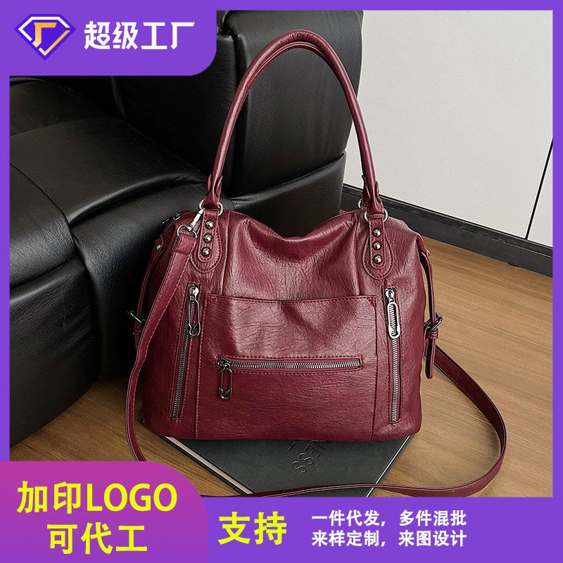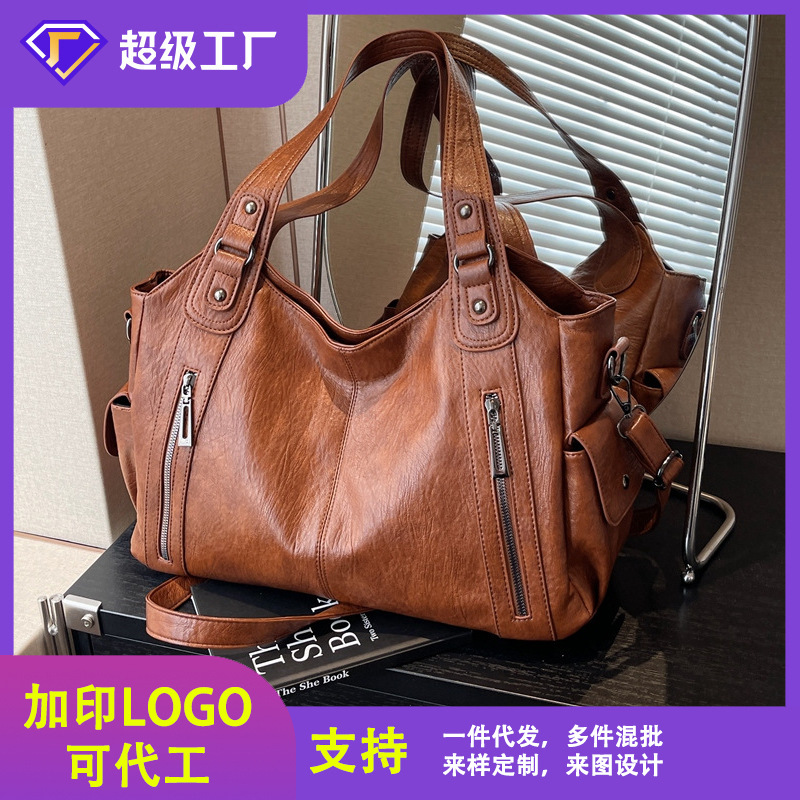 カスタマイズ可能な欧米風トートバッグ、女性用大容量ソフトレザーハンドバッグ、多用途通勤用高級感ショルダーバッグ