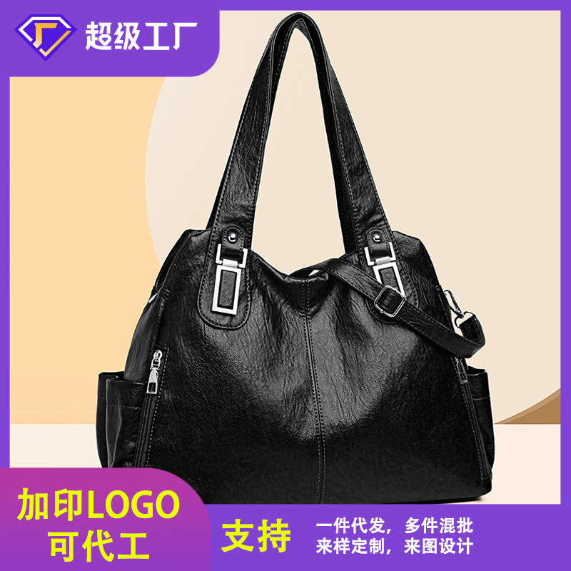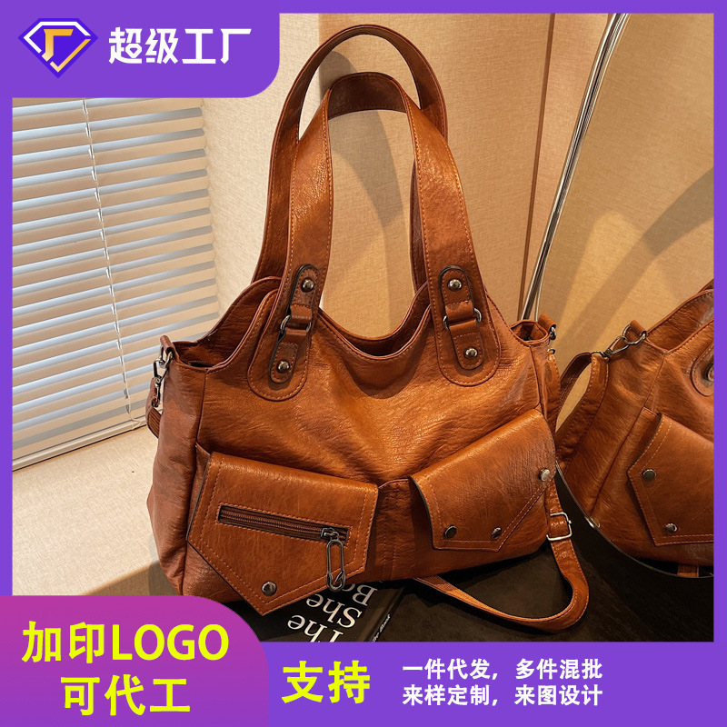 春新作大容量トレンドソフトレザーカジュアル通勤レディースワンショルダー斜めがけショルダーバッグ高級感純色トートバッグ