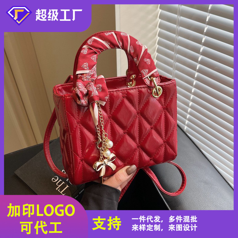 ミニ菱格戴妃包女性斜めショルダーバッグ新高級感大容量小香風手提げシングルショルダーバッグ