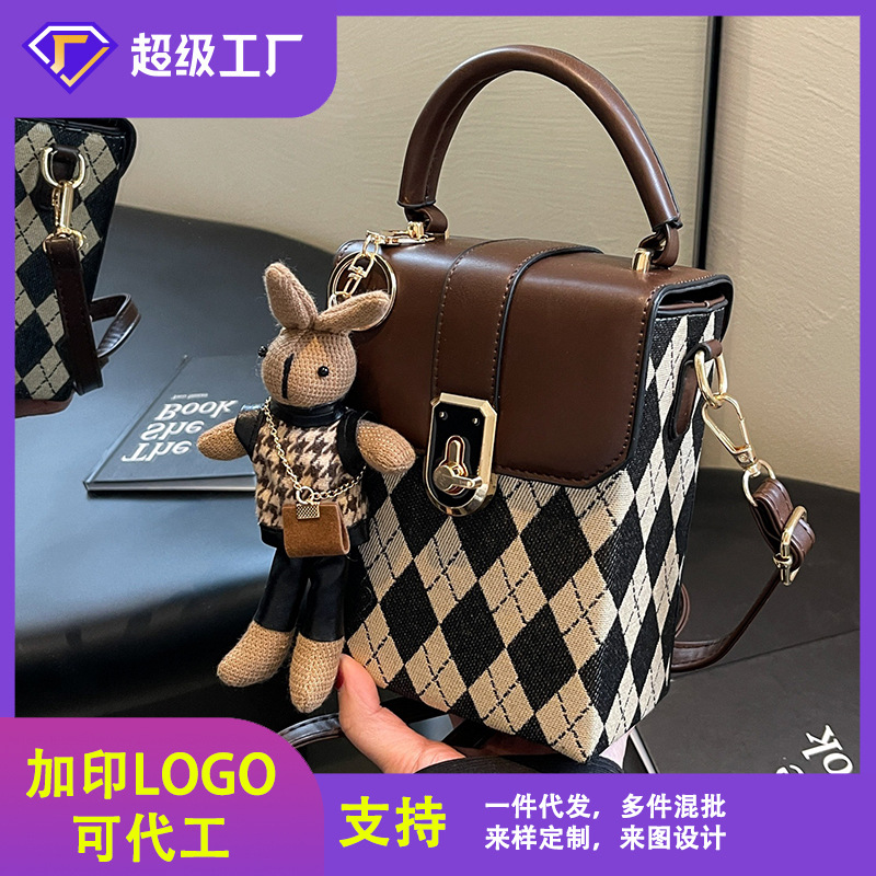 菱格の色合わせバッグ女性2025ファッション新型ハンドバッグミニ化粧バッグ高級シングル肩斜めショルダーバケツバッグ