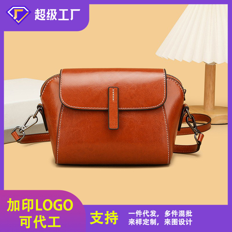 クロスボーダー本革レディースバッグ新しいシェルバッグファッションレトロシニアセンスメッセンジャーバッグ本物の牛革軽量ショルダーバッグ