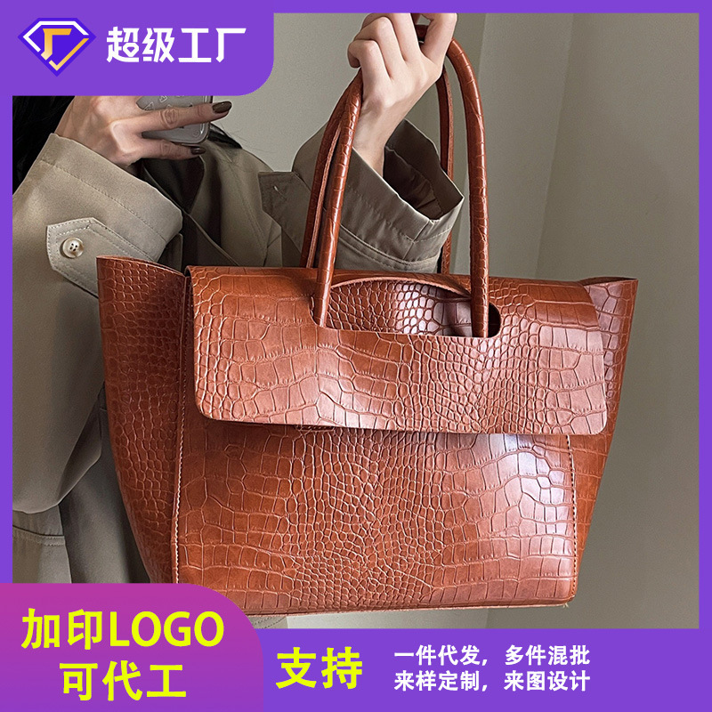 大容量ハンドバッグ2024新作レディース通勤トートショルダーバッグ脇の下バッグ海外販売バッグ女性用クロコダイル柄