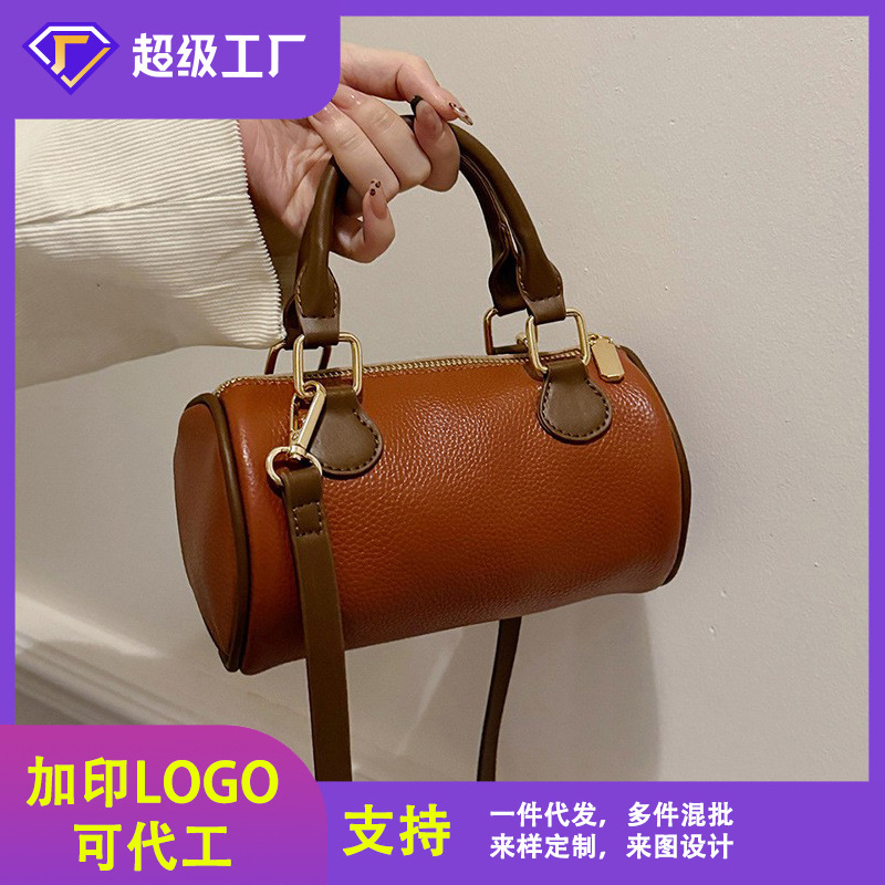 第一層牛革ハンドバッグ女性の新しい本革ショルダーバッグ通勤ハイエンドメッセンジャーバッグ多用途小型シリンダーバッグ