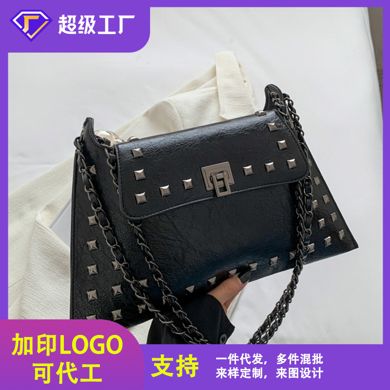クロスボーダー女性2025春新作レトロリベットシングルショルダーバッグ質感チェーン高級感手提げショルダーバッグ