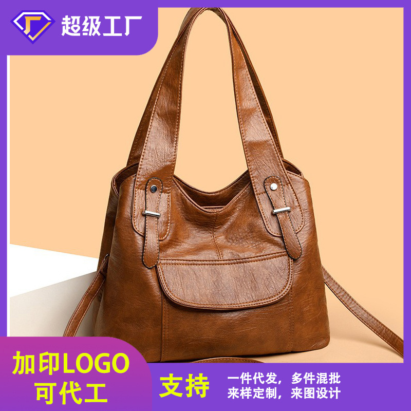 クロスボーダー卸売レディースカジュアルショルダーバッグ高度な質感大容量ソフトレザーハンドバッグ新しい通勤トートバッグ