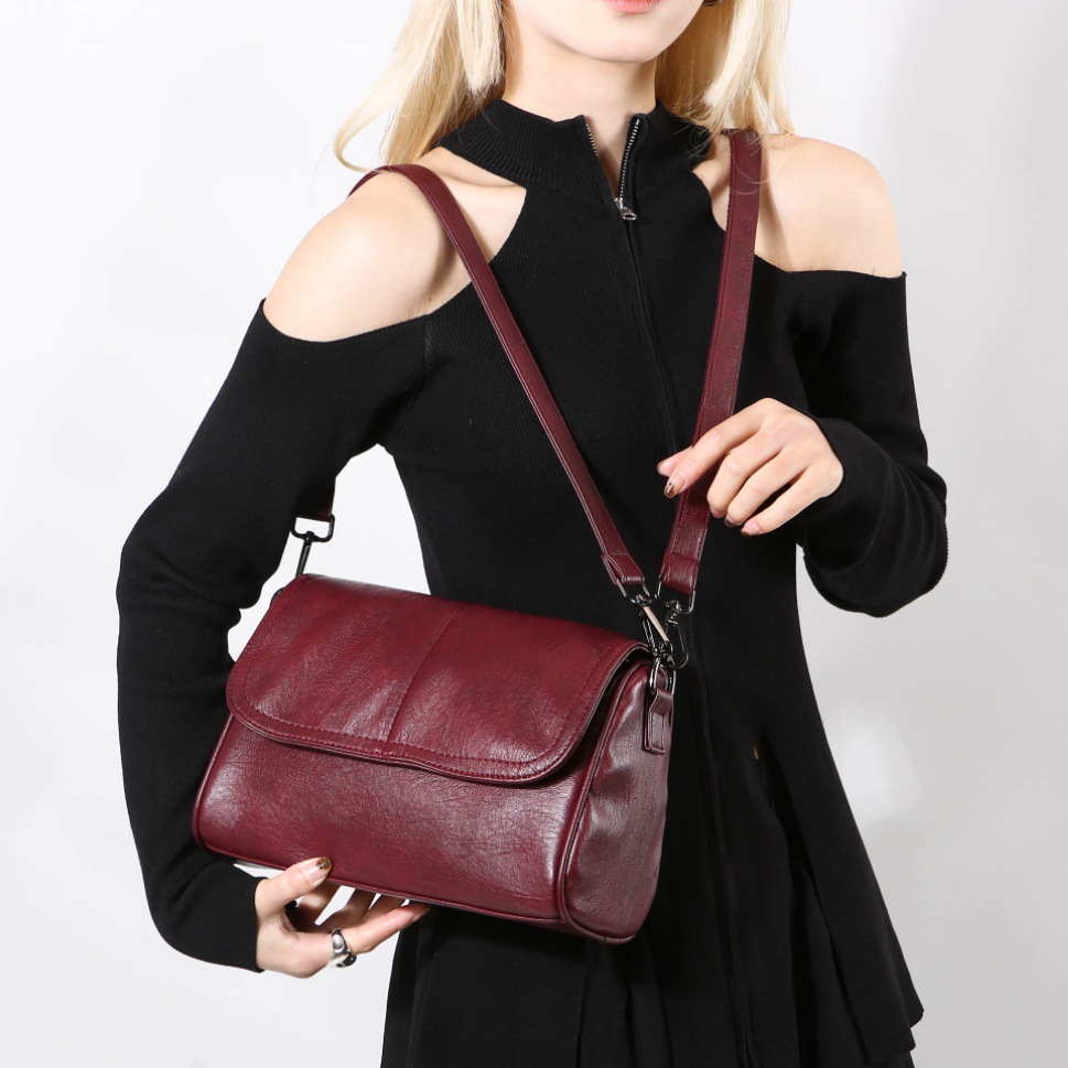 トップ層牛革バッグ女性2025新型韓国系復古純色百合真皮シングル肩斜め掛け小角バッグ