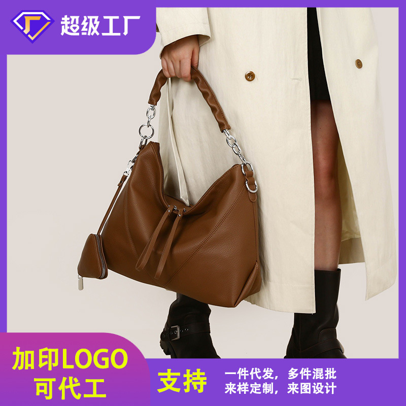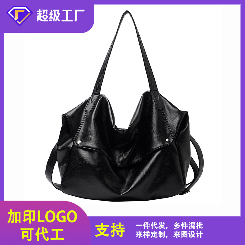 2025年新作クロスボーダーシングルショルダーラージバッグ、ファッショナブルなヨーロッパとアメリカのレイジースタイルの大容量バッグ、女性の多用途通勤トートバッグ