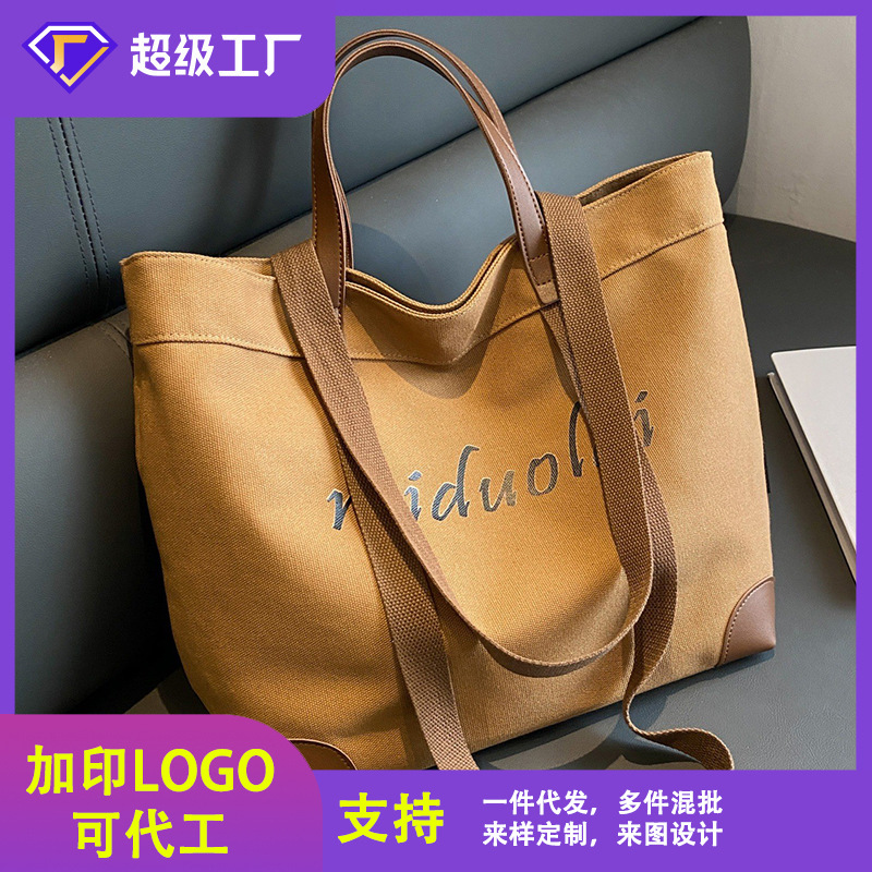 レトロ小衆デザインキャンバスバッグレディース2025クロスボーダー高級感ワンショルダーバッグ通勤大容量トートバッグ