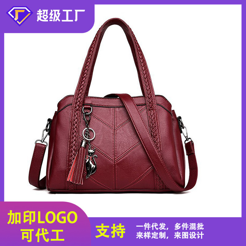 外国貿易でよく売れている女性カバンは欧米の中年の肩に斜めにまたがって大容量のレトロなお母さんのカバンを持っています。