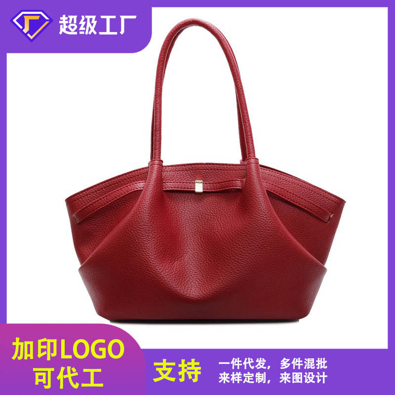 ヨーロッパとアメリカのソフトレザーショルダーバッグ、ハイエンドの新しいニッチデザイントートバッグ、大容量の女子大生通勤バッグ