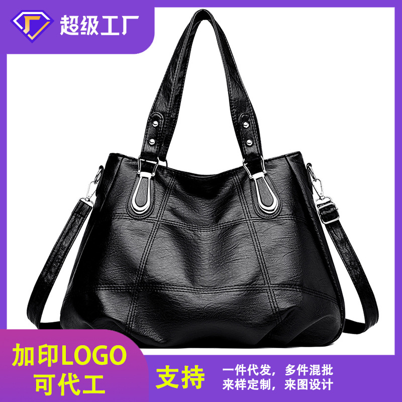 女性通勤用クロスボーダー外国貿易トートバッグ、高級大型バッグ、シンプルなソフトレザーショルダーバッグ、ヨーロッパとアメリカの大容量トートバッグ