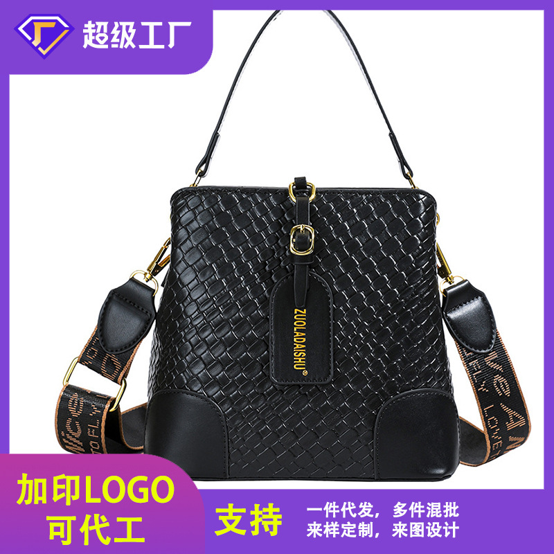 貿易バッグレディース新作バケットバッグニッチハイエンド2025夏大容量通勤織りショルダークロスボディバッグ