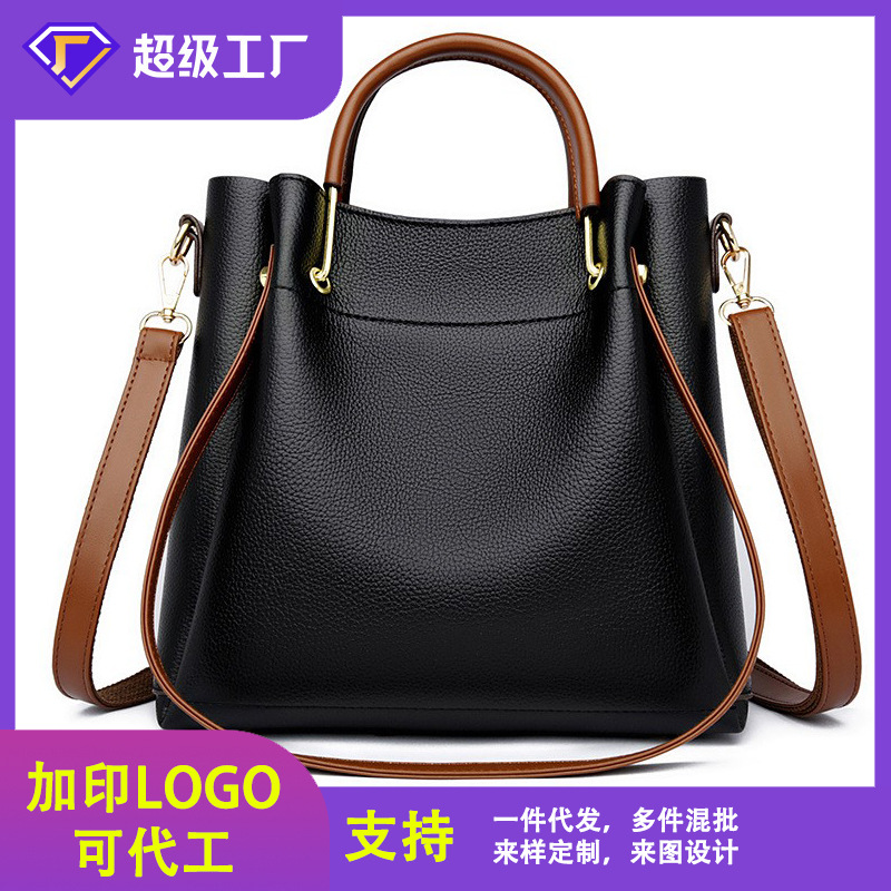 フレンチハンドバッグ大容量レディースバケットクロスボディバッグ新しい多用途通勤中年ソフトレザーポータブルクロスボディバッグ