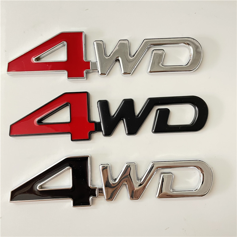 4WD メタルカーステッカー 立体車装飾ステッカー 4WD 四輪駆動ロゴ 改造車ロゴ 車のステッカー 黒 赤