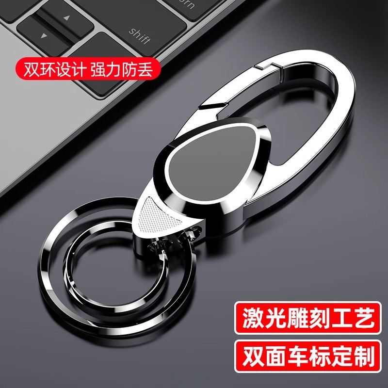 男性用車のキーホルダー、クリエイティブなパーソナライズされた紛失防止腰掛け金属キーチェーンペンダント、レーザー車のロゴ、数百の姓