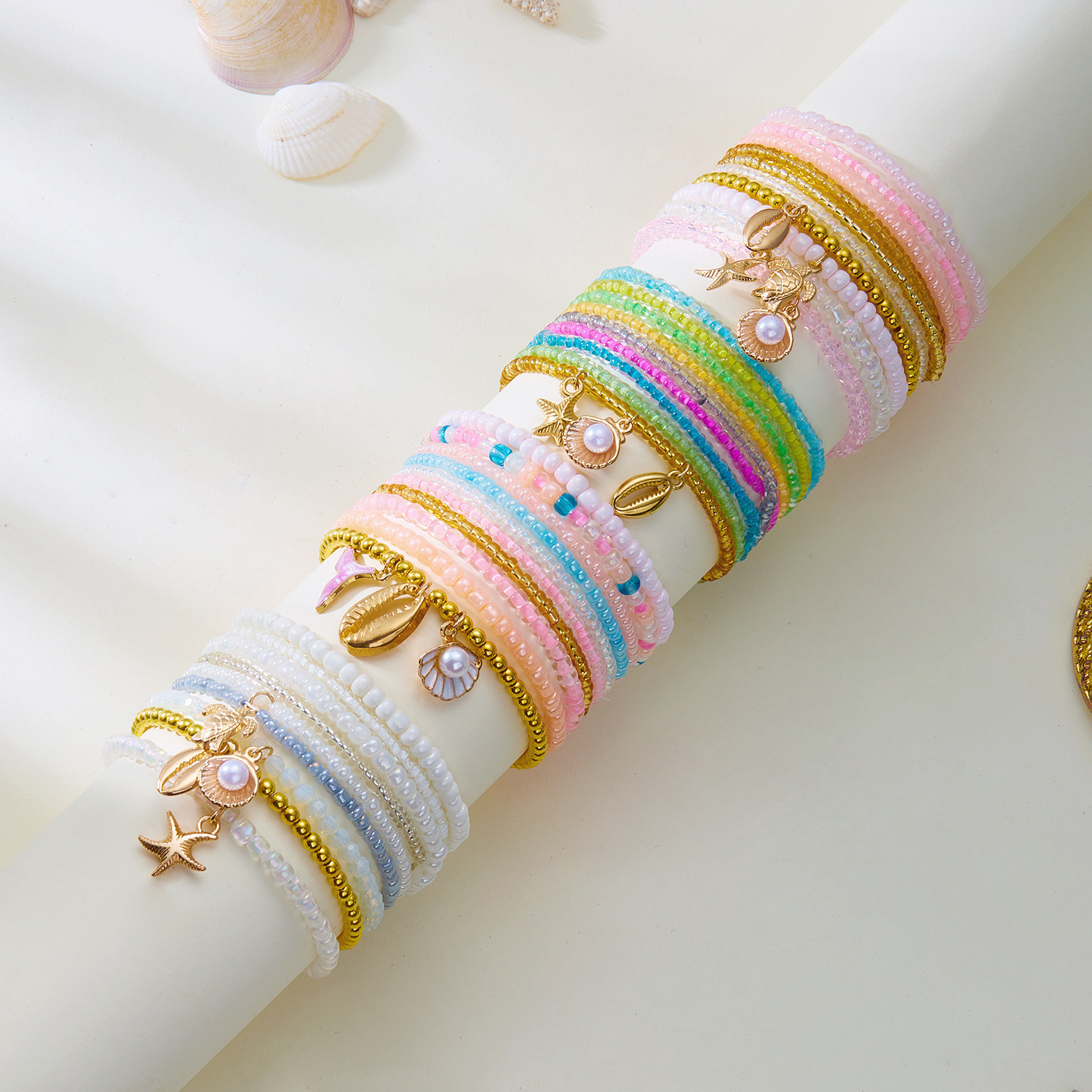 ボヘミアン風多層ビーズブレスレット百合夏の要素海星亀貝殻ビーズブレスレット女性セット