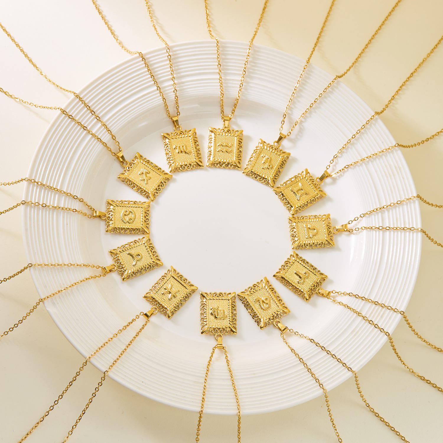 新型クロスボーダー高級感欧米ステンレス十二星座ネックレスファッション正方形透かし彫り星座記号ネックレス