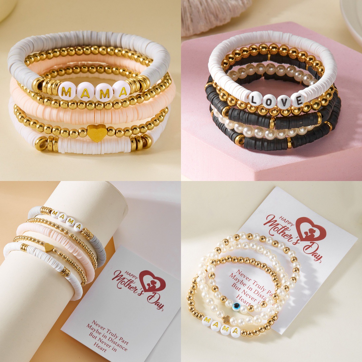 クロスボーダー日韓ファッション新型母の日mama mini親子米珠花手串紙カードブレスレット2本セット