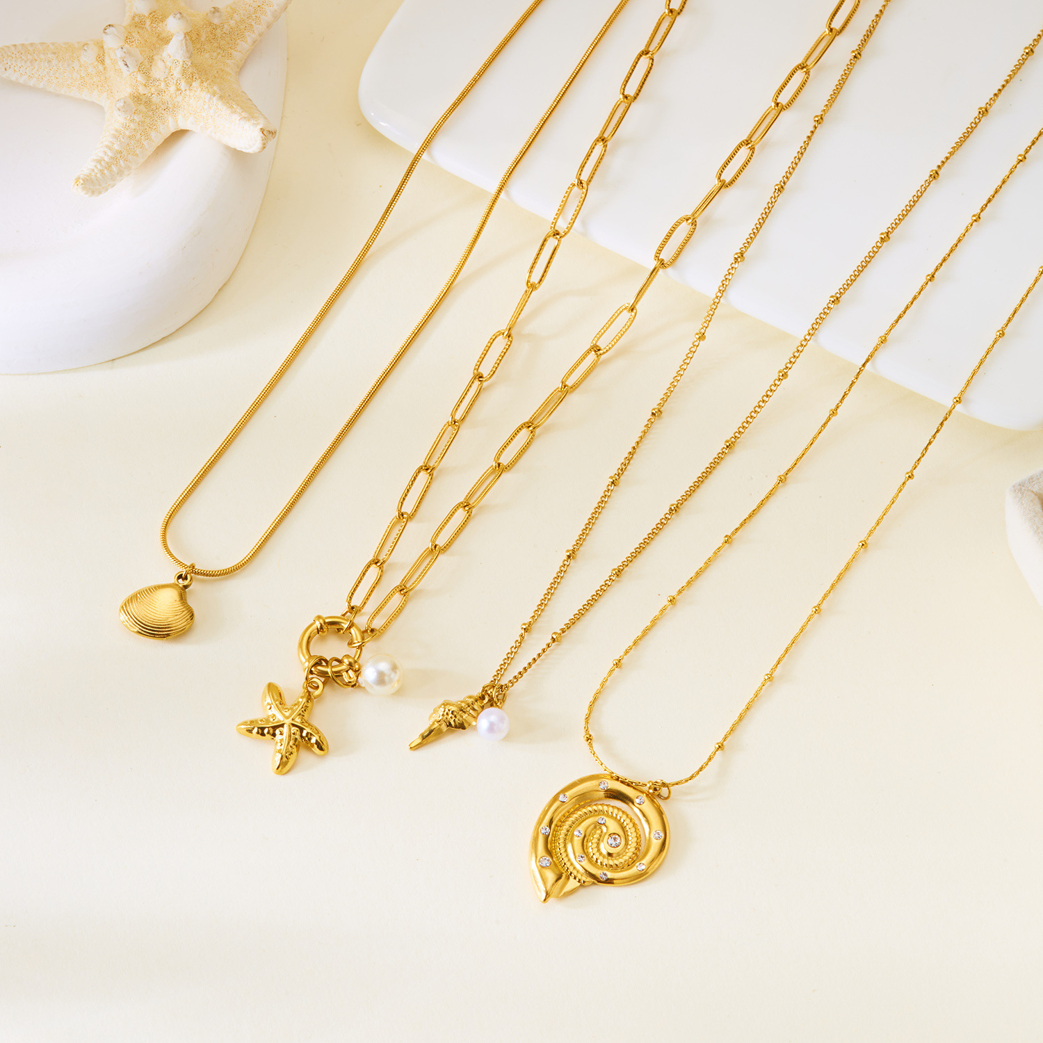 クロスボーダーヨーロッパとアメリカのステンレススチールジュエリーオーシャンシリーズボヘミアンスタイル多用途ニッチヒトデとイルカペンダントネックレス