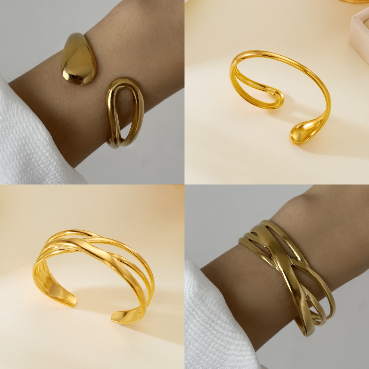 クロスボーダーの新しいオープンステンレススチールブレスレット、誇張された個性、不規則な羽の特殊な形、女性用のワイドバージョンの中空ブレスレット