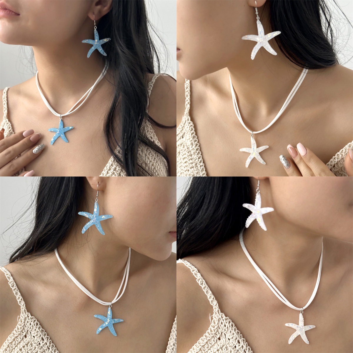 国境を越えたリゾートビーチボヘミアン風海星イヤリングネックレスセット誇張海洋ビーチ百合ネックレス女