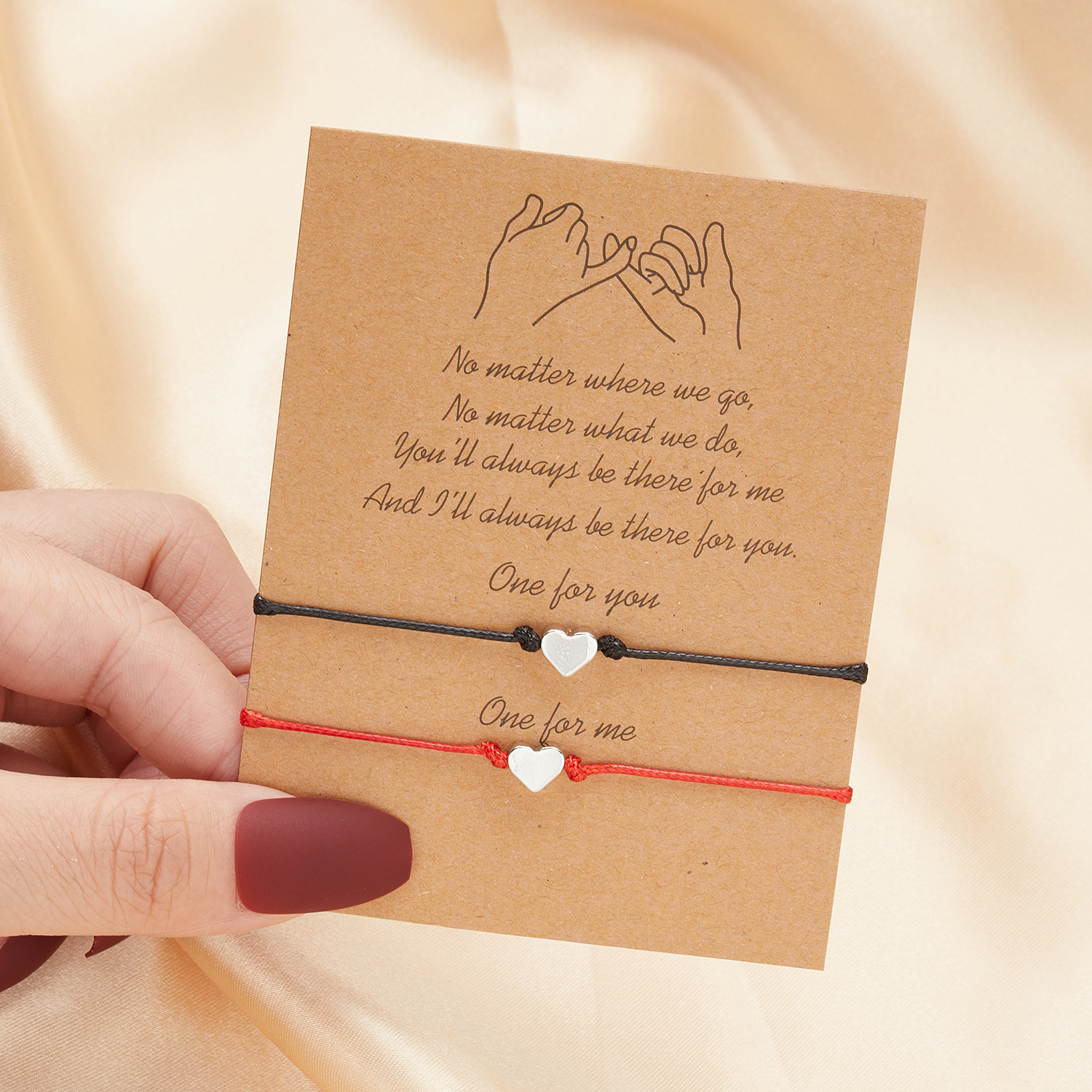 日韓風愛2条編み調整可能カップル紙カードブレスレットハート形黒赤ブレスレットセット現物卸売り