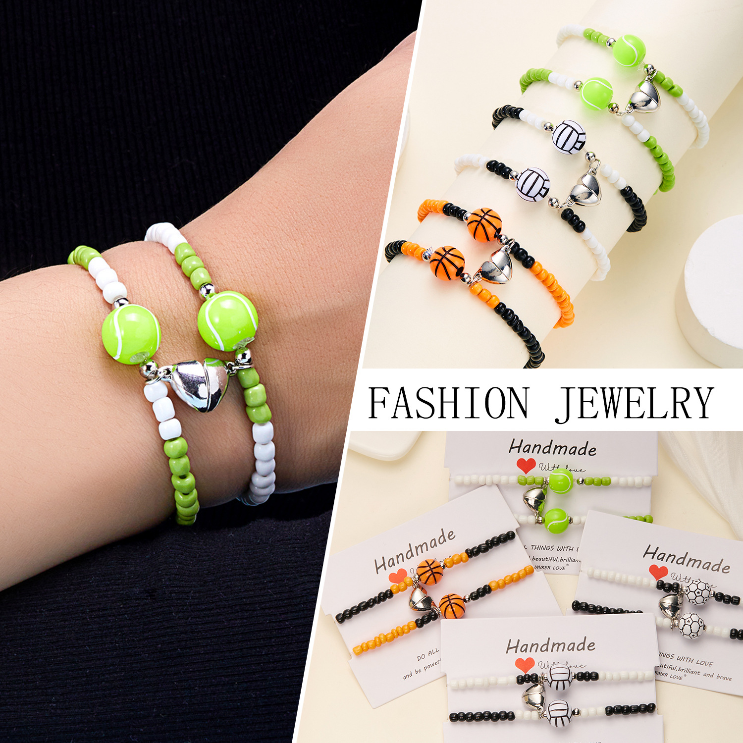 クロスボーダーの人気手作りビーズビーズサッカーバスケットボールのマグネットカップルのブレスレット