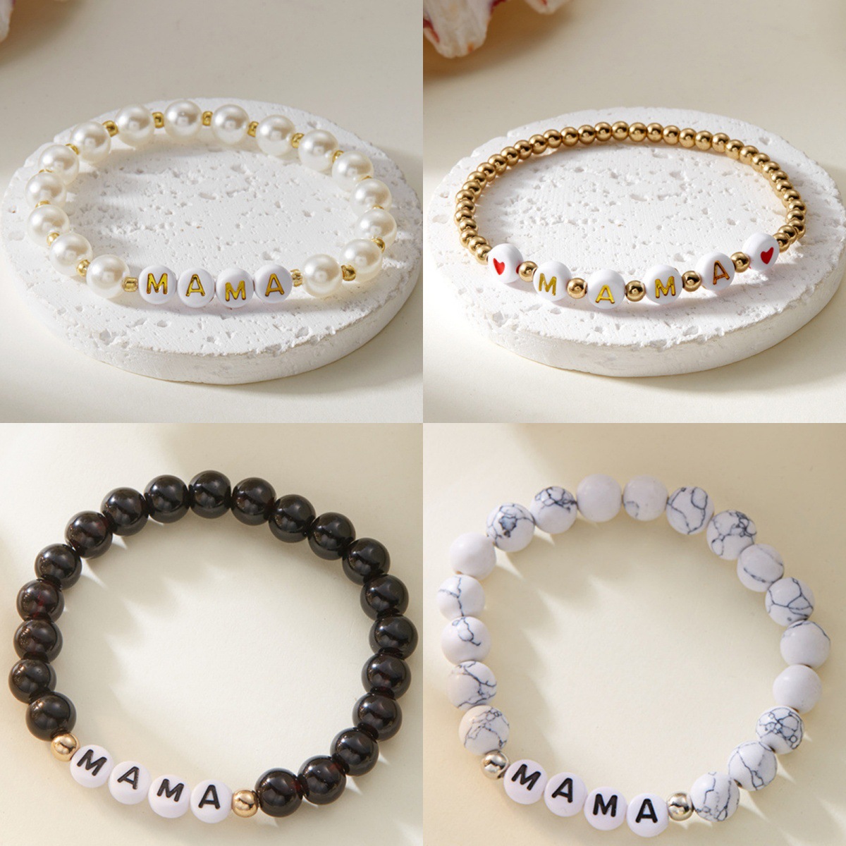 新型クロスボーダー母の日ブレスレットファッション百合MAMAアルファベットビーズブレスレット祝日プレゼントアクセサリー卸売り