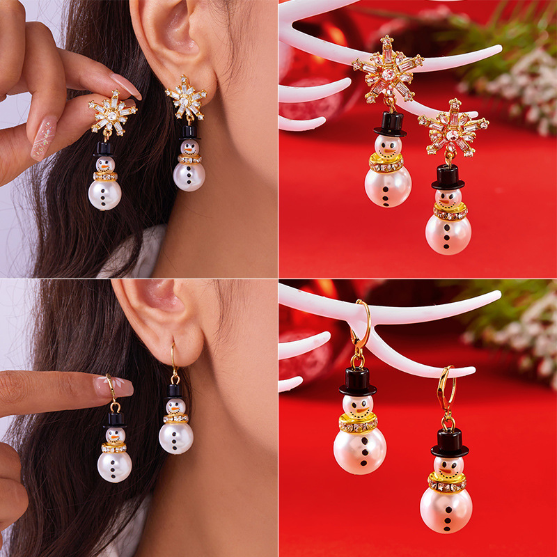 欧米のクロスボーダーのクリスマスの耳飾りのファッションは真珠のクリスマスの雪だるまをまねてダイヤモンドのイヤリングのかわいい漫画の耳掛けを入れます。
