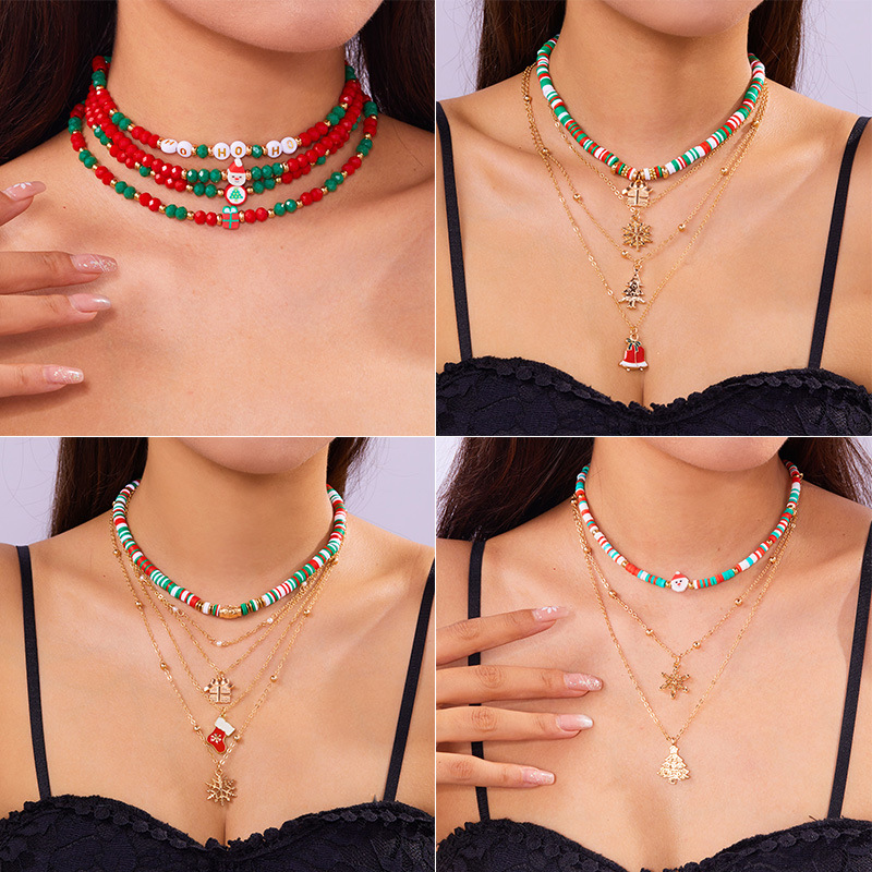 欧米のクロスボーダークリスマス装飾品サンタクロース多層ネックレスセット水晶手作りビーズchokerネックチェーン