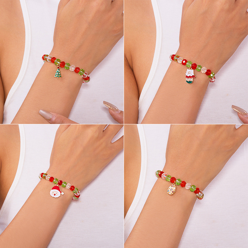 欧米のクロスボーダークリスマス装飾品水晶数珠手串女サンタクロースクリスマスツリー手袋ペンダントブレスレットセット