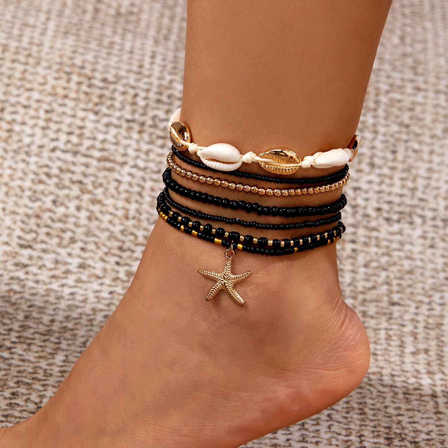 クロスボーダーの新型夏の小清新な砂浜の米珠の足のチェーンは2セットの海星のウミガメの米珠の足のチェーンの卸売りを組み合わせます。