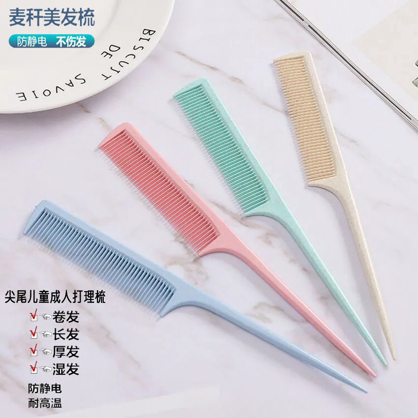 帯電防止家庭用ポータブル小麦わらコーム、環境に優しい、歯が抜けない、幅広の細かい歯のコーム、長い柄のコーム、脱毛マッサージコーム