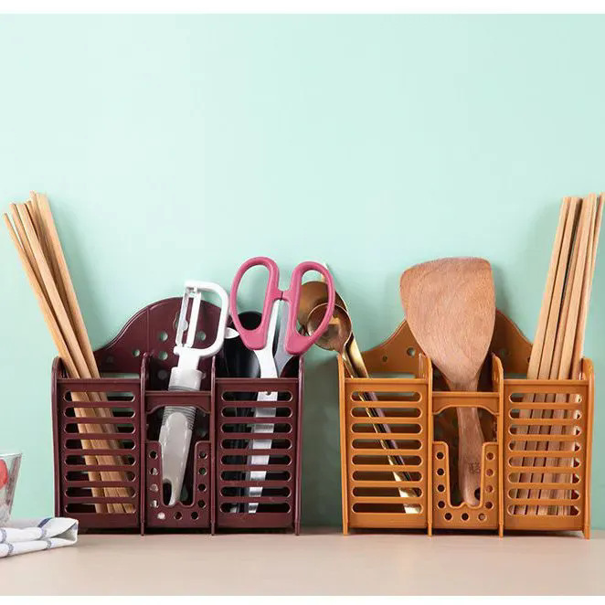 壁掛け式厚みのある3コンパートメント箸ケージ、レトロな昔ながらの家庭用排水ラック、食器収納プラスチック箸ホルダー