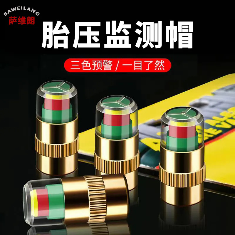 車のタイヤバルブキャップ、タイヤ空気圧監視キャップ、空気圧検出警告早期警告バルブキャップ、金属全銅