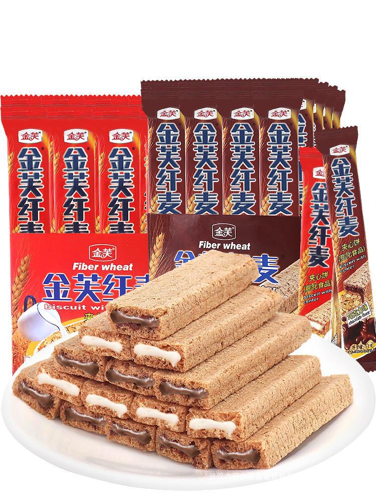 金芙繊麦サンドイッチチョコレート味威化ビスケットの長い箱に子供の頃の懐かしいお菓子とレジャー食品の軽食があります。