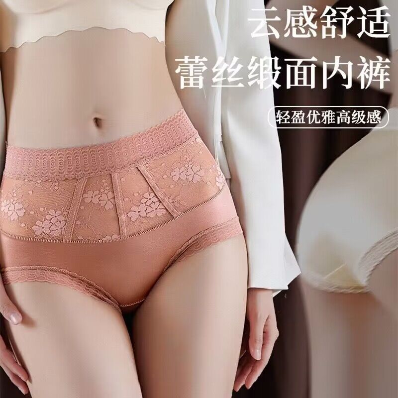 2023年の新型高腰レース光沢下着甘いサテンシルク高弾女性下着