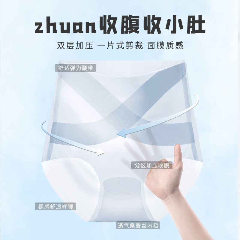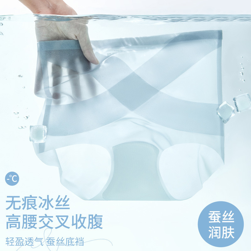冰丝少女性感高腰无痕透气蚕丝裆绸缎高弹力高腰大码提臀三角裤女