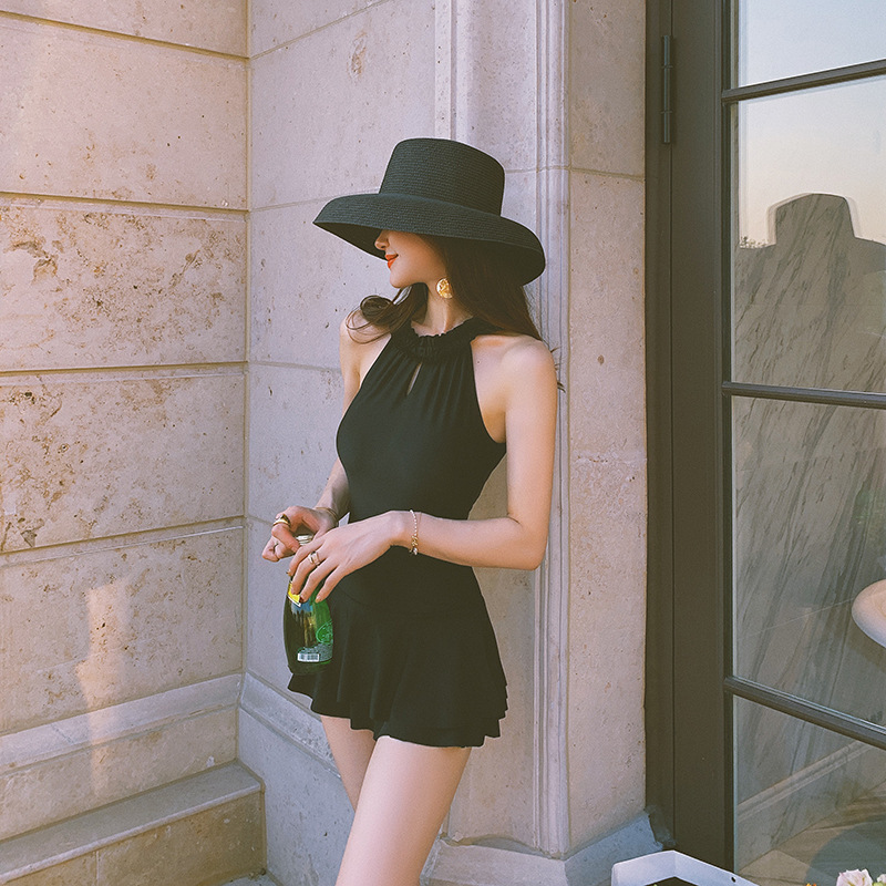韓国のインスタ映え水着、レディースワンピース型、控えめ、胸パッド付き、スカート風、背中開き、スポーツ、温泉、水着、背中開きデザイン