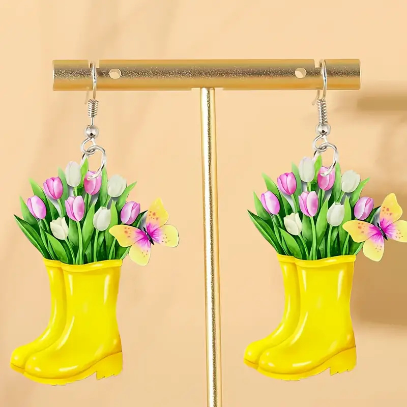 クロスボーダー熱売雨靴花束アクリルイヤリング2025年新作文芸小清新創意デザイン感イヤリング
