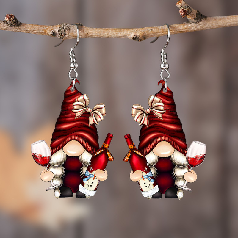 国境を越えて赤いクリスマス帽子グラスアクリルイヤリングレトロなクリエイティブデザイン感のあるイヤリング