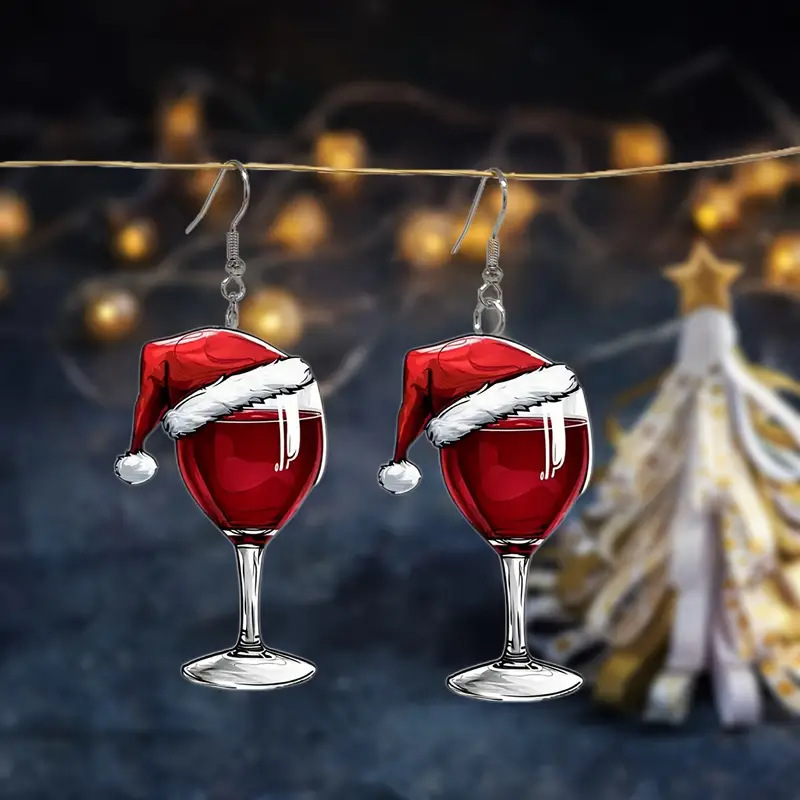 国境を越えた新しいクリスマス帽子高足カップイヤリングアクリル材質プレゼントワイングラス帽子耳飾りパーティーペンダント
