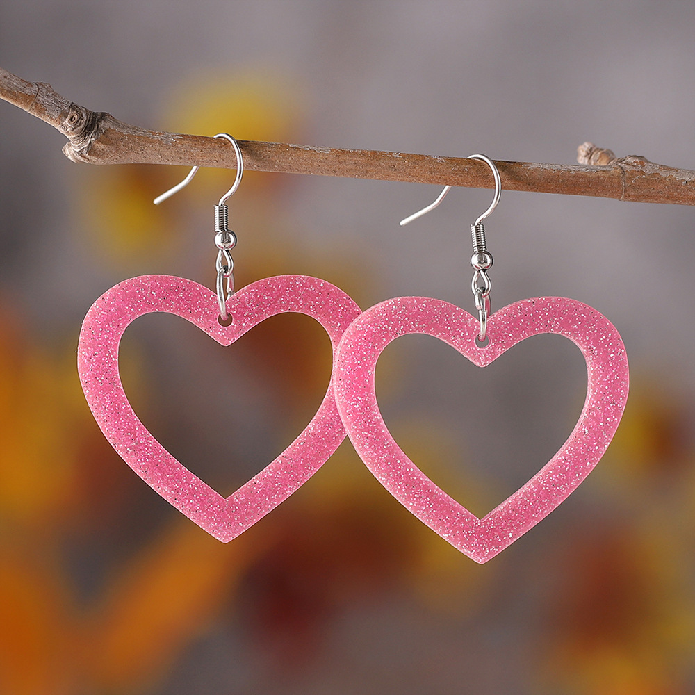 クロスボーダーの新しいバレンタインデーのピンクのスパンコールの透かし彫りの愛のペンダントのイヤリングの女性のアクリルの両面の耳飾り